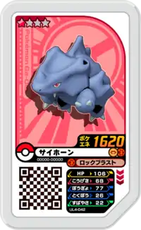 Rhyhorn (Japanese: サイホーン Sihorn) is a Grade 1 Pokémon Ga-Olé disk. It is part of the fourth Ultra Legend set.