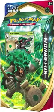 The Rillaboom Theme Deck from the Sword & Shield expansion of the Pokémon Trading Card Game focuses on ![]()