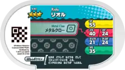 Riolu (Japanese: リオル Riolu) is a Grade 3 Pokémon Mezastar tag. It is part of the fourth set.