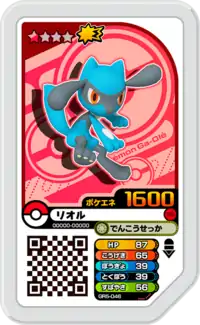 Riolu (Japanese: リオル Riolu) is a Grade 1 Pokémon Ga-Olé disk. It is part of the fifth Grand Rush set.