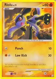Low Kick is a move in the Pokémon games that Riolu can learn. This card's Pokédex entry comes from Pokémon Diamond.
