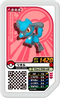 Riolu (Japanese: リオル Riolu) is a Grade 1 Pokémon Ga-Olé disk. It is part of the fifth Ultra Legend set.
