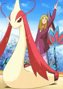 | Milotic is Robert's main Pokémon. It was first seen in Win, Lose or Drew! where it was used in the Slateport City Pokémon Contest. It proved to be very talented as its performance was able to advance Robert to the Battle Round. It later battled Drew and his Roselia where it used its Iron Tail attack. When Roselia sent out a Magical Leaf, Milotic cut through it with its Twister. Robert was then declared the winner of the battle and he went on to win the whole Contest.