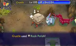 In Explorers of Time, Darkness and Sky, Rock Polish is a move with 22PP. The user increases its own Movement Speed by two levels. This move is affected by Snatch and Taunt.