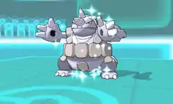 Rhyperior slams its fists together and the orange plates all around its body glow red, allowing Rhyperior to move faster. | ||