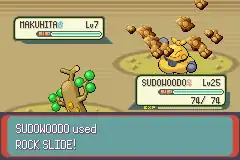Sudowoodo raises one of its hands in the air and waves them down, causing a barrage of rocks to fall onto the opponent. | ||