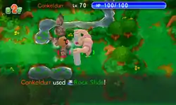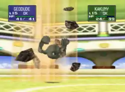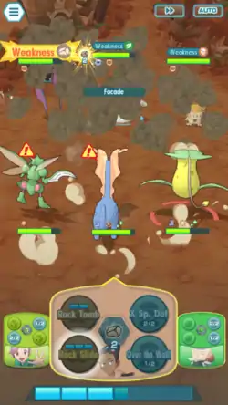 In battles with multiple opponents, Rock Slide targets all adjacent opponents. Rock Slide will also destroy certain natural objects found in the background of battles.