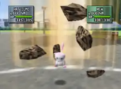 | The user whacks the area with its tail and a barrage of rocks come falling down. | |||