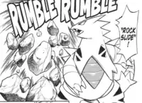 Onix hits the walls hard and a large amounts of rocks fall causing a rock slide. | ||