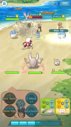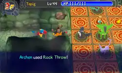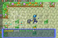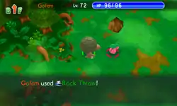 In Red Rescue Team and Blue Rescue Team, and Explorers of Time, Darkness and Sky, Rock Throw is a move with base power of 5, 16PP and 90% accuracy. It damages an enemy in the front.