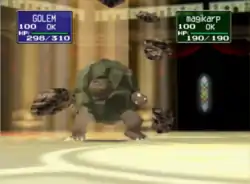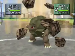 Golem's shell comes apart and the boulders rise into the air. The boulders then fall on top of the opponent. | ||