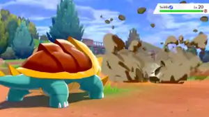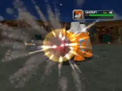 Groudon swings one of its arms and smashes a nearby rock structure. The rocks then fall down onto the opponent, or Groudon waves one of its arms and a barrage of large boulders comes out of it and onto the opponent. | ||