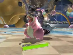 Nidoking slams his arm onto the ground and a geyser of rocks shoot up from the ground underneath the opponent. | ||