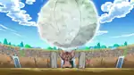 Silver sparkles form in between Scolipede's horns. The sparkles then expand, forming into a silver orb of energy. Finally, the glow fades out the orb, forming into a large gray boulder with a transparent silver glow. The orb rests in Scolipede's horns, and it throws the boulder at the opponent. | ||
