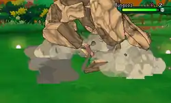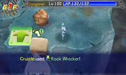 In Explorers of Time, Darkness and Sky, Rock Wrecker is a move with 28 base power, 7 PP and 88% accuracy. The attack travels up to 10 tiles away and hits the first Pokémon it encounters, ally or enemy. If the move hits a Pokémon successfully, the user is inflicted with Paused status condition for 1-2 turns, preventing them from acting on these turns.