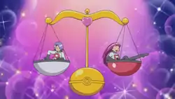 Pokémon the Series: XY generally had smaller moments between Jessie and James peppered throughout the episodes, such as pushing each other out of the way of danger. One such moment is during A Gaggle of Gadget Greatness! when Jessie struggles to open a trick wall, James whacks a hand against it, briefly trapping Jessie between his body and the wall until it opens. Annoyed, she tells him, "That was misleading." The frames are presented like a classic Kabedon scene, a trope often used in anime and manga for love confessions. In Diancie and the Cocoon of Destruction when the trio believe they are about to get rich from Diancie’s diamonds, James's first suggestion is they could build a house with the money and Jessie follows this up by saying they might get a holiday home too.