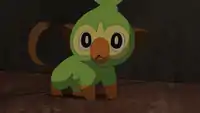 Grookey is a Pokémon that ended up escaping from the Rocket Prize Master when Pelipper accidentally dropped it in Vermilion City. Grookey found its way to the Cerise Laboratory, where it bonded with Goh, until it was later retrieved by Team Rocket. Grookey ended up escaping Team Rocket's hideout as they slept and joined Goh's team after breaking its old Poké Ball. | ||