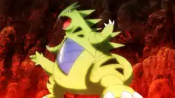 | James used Tyranitar to prevent Ash and Goh from foiling Team Rocket's scheme to steal a group of wild Ivysaur and Bulbasaur. It was eventually defeated by Pikachu's Thunderbolt.