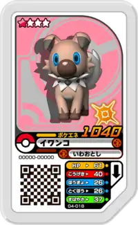 Rockruff (Japanese: イワンコ Iwanko) is a Grade 1 Pokémon Ga-Olé disk. It is part of the fourth set.