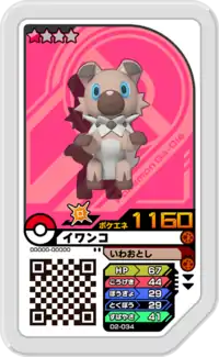 Rockruff (Japanese: イワンコ Iwanko) is a Grade 1 Pokémon Ga-Olé disk. It is part of the second Dash set.