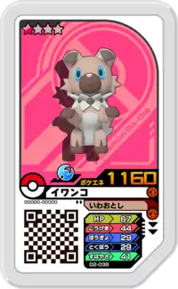 Rockruff (Japanese: イワンコ Iwanko) is a Grade 1 Pokémon Ga-Olé disk. It is part of the second Dash set.