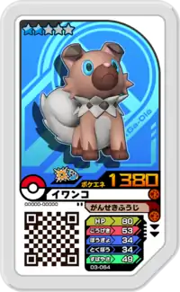 Rockruff (Japanese: イワンコ Iwanko) is a Grade 2 Pokémon Ga-Olé disk. It is part of the third Dash set.