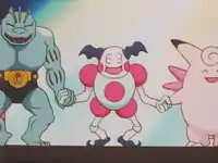 | Mr. Mime was one of the actors of the Pokémon Showboat. Mr. Mime was seen in the beginning, where it was part of an advertising for people to go to the performance. Later, it, along with the other Showboat Crew Pokémon, were dancing on the stage after their performance was done. When Team Rocket took over the floating theater, one of the human actors played Chansey to trick Team Rocket into believing that they could talk to throw the trio off guard.