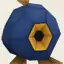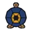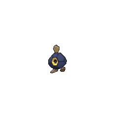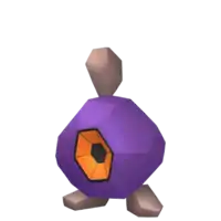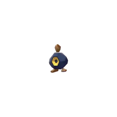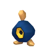 Roggenrola is a roughly spherical rock-like Pokémon. Its body is blue and covered in large, smooth facets. It has a hexagonal, yellow artifice in the center of its body, leading to a hexagonal opening that functions as an ear. Roggenrola has a brown, rocky oblong atop its head and similar brown rocks that serve as feet.