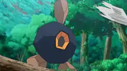 Roggenrola is born deep underground and was discovered about 100 years ago in an earthquake fissure in a layer of exposed rock. Its steel-hard body is made up of dirt from many centuries ago and it compares its hard body with those of Geodude and Carbink; however, a sufficiently long soak in water will cause its body to soften to some degree. Inside of Roggenrola lies an energy core, making its body somewhat warm to the touch. Its ear leads straight to its energy core, causing it to become angry if someone sticks their hand in there. As stated by Cilan in Where Did You Go, Audino?, Roggenrola has sensitive hearing and can hear sounds that are inaudible to humans. It tends to follow the sounds it picks up with its lone ear, panicking if these sounds cease. Dwebble is a natural enemy of Roggenrola, as the former tends to think that Roggenrola is an inanimate rock to turn into a home. Sometimes, Rhyperior mistakes this Pokémon for an ordinary rock and fires them through their hands.
