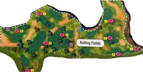 This den is roughly west of Meetup Spot, between grass fields near the southern cliff wall.