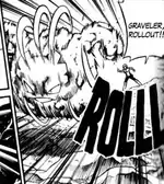 Graveler curls itself into a ball and rolls toward the opponent with incredible speed and power. Sometimes, it glows light blue while rolling. | ||