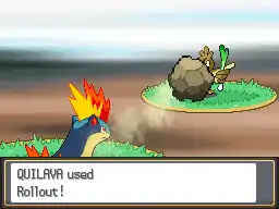 | Quilladin's body glows light green. It then jumps into the air and then rolls into the opponent with great speed and power. | |||