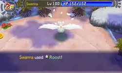In Explorers of Time, Darkness and Sky, Roost is a move with 14PP. The user restores half of its HP. If it's part Flying-type, it loses that type for the rest of the turn. This move is affected by Snatch and Taunt.