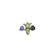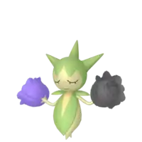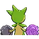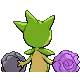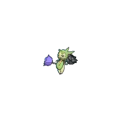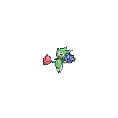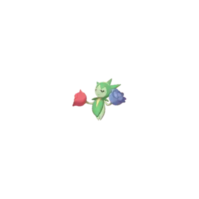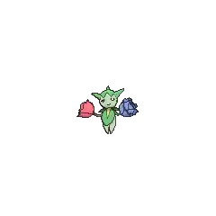 Roselia's aroma brings serenity, but the thorns on its head contain a vicious poison. The more healthy it is, the more pleasant its flowers' aroma. It can lull opponents to sleep using its former signature move, Grass Whistle. It shoots sharp thorns at anything that tries to steal its flowers and uses different poisons in each hand when it attacks. It lives in grassy areas where it drinks nutrient-rich spring water.