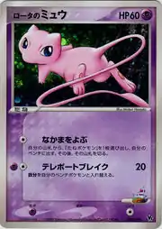 Rota's Mew (Japanese: ロータのミュウ Rota's Mew) is a Psychic-type Basic Pokémon card. It is part of the Movie Commemoration VS Pack: Aura's Lucario.