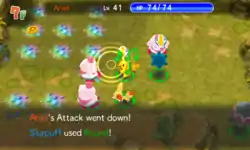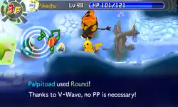 Round damages an enemy in front. If a teammate in the same room used Round in the same turn, the power of the move is increased for the turn by 50%. In Pokémon Super Mystery Dungeon, Round causes its own Round status condition on the user which lasts for one turn.
