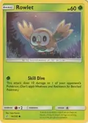 Rowlet (Japanese: モクロー Mokuroh) is a Grass-type Basic Pokémon card. It is part of the Cosmic Eclipse expansion.