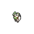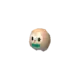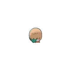 Rowlet is a small, avian Pokémon resembling a young owl with a round body and short legs. Its plumage is primarily beige with a white underside and facial disc. The facial disc itself is in the shape of two overlapping circles. It has large black eyes and a stubby beak. The top part of its beak is white, while the lower half is orange-brown. Its feet have two forward-facing toes and one backward-facing toe; they are the same color as the lower half of its beak. Two leaves sprout from its chest arranged to resemble a bowtie. Additional leaves form its tail and line the undersides of its wings.