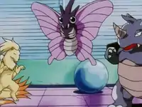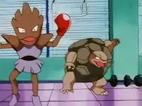 | Exeggutor was shown to be a nimble dancer, and used its three heads to terrify Ash's Bulbasaur in its battle. It was easily defeated when it was put to sleep by Bulbasaur's Sleep Powder.