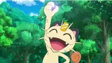 - Meowth tries to perform Iyami's "Shesh" pose from Osomatsu-kun near the end of the episode.