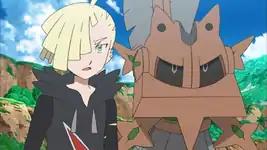 Gladion won't go into detail about Silvally, but explains it was created to defeat Ultra Beasts. Ash apologizes for suddenly appearing as Gladion starts to demand answers about Ash and why unusual things are happening to him. Ash, unable to provide any answers to the given questions, suggests they have another battle, which Gladion agrees to. Gladion uses Type: Null whilst Ash battles with Lycanroc. The battle begins with Type: Null blocking Rock Throw with its own attack before using Swords Dance. Lycanroc dodges Type: Null's Crush Claw before attempting to attack with Bite, which gets countered. After dodging another attack, Lycanroc lands a direct attack on Type: Null, but is thrown in the water nearby. This causes Lycanroc to get dirty, which makes it angry once again.