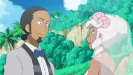 The next day, everyone else learns about the engagement from Ash. The girls start fantasizing about the ceremony until Ash explains that there won't be one. However, Mallow suggests the group organize a present for the couple. Lillie and Lana add that they could arrange the whole ceremony, and everyone enthusiastically agrees to plan it in secret. Later, at Aina's Kitchen, Kiawe, Lana, Lillie, and Mallow are discussing invitation design ideas when Ash and Sophocles return to report that Samson Oak agreed to officiate the ceremony. Lillie explains that Olivia had agreed to attend, while Mallow announces that she has the menu for the ceremony covered, and that the wedding cake will be Alolan pancakes made by Nina.