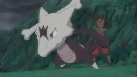 Kiawe is about to take a break from work on Paniola Ranch when his sister Mimo comes rushing into the barn to alert him to Marowak's misbehavior. Kiawe, Mimo, and Turtonator rush over to see Marowak being knocked into the air by some of the Tauros herd's powerful kicks and horn attacks. When Kiawe tells Marowak that it never seems to learn, Marowak headbutts Turtonator but gets stuck in the shelled Pokémon's chest opening. Kiawe separates the two Pokémon, and Mimo scolds Marowak for its aggressive demeanor.