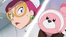 With their true identities now exposed, Rotom demands that Stufful be returned. Jessie yells out that she would return Stufful, but it is attached to her. The answer only infuriates Ash, and he has Pikachu launch a Thunderbolt attack. As the electricity begins to reach into the air, Bewear crashes through the glass ceiling to rescue Team Rocket. As it is about to scoop up the group, Stufful captivates Bewear's attention. Suddenly Bewear lets out a shrill of joy, and Stufful jumps into its arms. The scene shocks everyone, and Meowth reveals that Bewear is Stufful's mother. Everyone is overjoyed for the pair, and Stufful waves to Wicke and the others. Bewear does the same before bundling Team Rocket in her arms and jumping onto an Aether Foundation helicopter. Bewear breaks off the helicopter's rotor blades and hands it over to Stufful. Stufful promptly begins twirling the blades in its hands, and this allows Bewear to return to her Melemele Island den. Wicke, in particular, is relieved to see Stufful returned to its mother's arms and takes a moment to reflect.