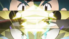 The situation seems dire. Guzzlord smashes its way to the group and jumps as it prepares to engulf them. Then, the Shiny Tapu Koko arrives on the scene and ensnares Guzzlord in electricity. Tapu Koko lets out a cry that reactivates Dia and Ash's Z-Rings. The duo are pleased and have Pikachu and Zeraora perform a double Gigavolt Havoc. The two Z-Moves combine into a swirling blue and yellow beam of electricity that overwhelms Guzzlord and pushes the Ultra Beast into the Ultra Wormhole. Afterwards the Ultra Wormhole closes. Dia is left speechless by the achievement as Ash goes on to hug Zeraora to thank it.