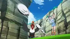 As Kahili and Touckey prepare for their swing, Ash and his classmates give encouragements to her from the background, and she thanks them all for their moral support. Filled with confidence, she strikes the ball as hard as she can, and Touckey uses Tailwind to speed the ball toward the green. However, the wind in the canyon whips up again, and the ball starts falling back. Not hesitating for a second, Kahili picks up Touckey by its legs and aims it at the falling ball. Touckey's beak starts heating up, and Kahili commands it to use Beak Blast, firing a massive beam that sends the ball hurtling back towards the green, successfully landing it in the cup. As everyone else celebrates Kahili's success, the master caddy walks away, saying to himself that there is nothing left for him to teach her at this hole, and that he'll be waiting for her at the "Eleventh Hole of Doom".