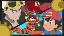 Ash's match against Guzma is fast approaching. As his friends offer him support, Tupp and his gang confront Ash, declaring that Guzma won't lose to the likes of him, for he had never lost. Ash claims they can't know the outcome of the battle yet, but the Team Skull Grunts continue to belittle him, sparking an argument between the rival sides. Plumeria orders them to stop the discussion, as she and Guzma arrive. Tupp points to Ash and his friends, how they announced that Guzma will lose. Guzma merely scowls at Ash, before leaving in a huff as he momentarily sees something that reminds him of Professor Kukui in Ash. Tupp leads the other two into a cheer for Guzma, though Plumeria scolds them for distracting the boss.