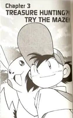 Treasure Hunting?! Try The Maze! (Japanese: お宝発見!? 迷路をすすめ! Treasure Trove?! Solve The Maze!) is the third chapter of the Ash & Pikachu manga series created by てしろぎ たかし Takashi Teshirogi. It is based on the anime episode Hassle in the Castle.