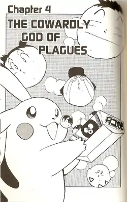 The Cowardly God Of Plagues (Japanese: 憶病な疫病神 The Cowardly God Of Plagues) is the fourth chapter of the Ash & Pikachu manga series created by てしろぎ たかし Takashi Teshirogi. It is based on the anime episode Wings 'N' Things.