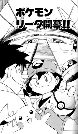 Start Of The Pokémon League!! (Japanese: ポケモンリーグ開幕!! The Start of the Pokémon League!!) is the thirty second chapter of the Ash & Pikachu manga series created by てしろぎ たかし Takashi Teshirogi.